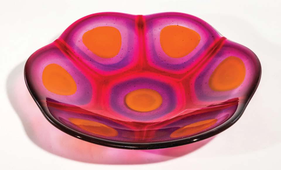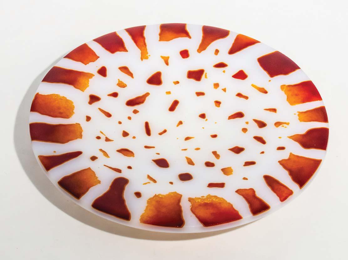 Геометрический узор, в котором чистота линий сочетается с глубиной цвета. Используя ту же технику инкрустации, вы создадите сложную композицию из нескольких оттенков, а контрастная фриттовая обводка придаст работе графичность и стиль.